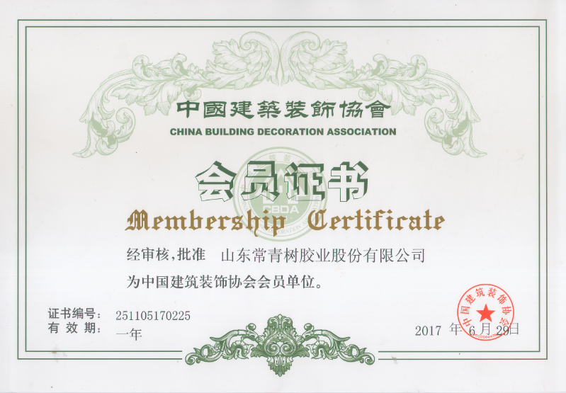 2017年,中國建筑裝飾協(xié)會會員證書