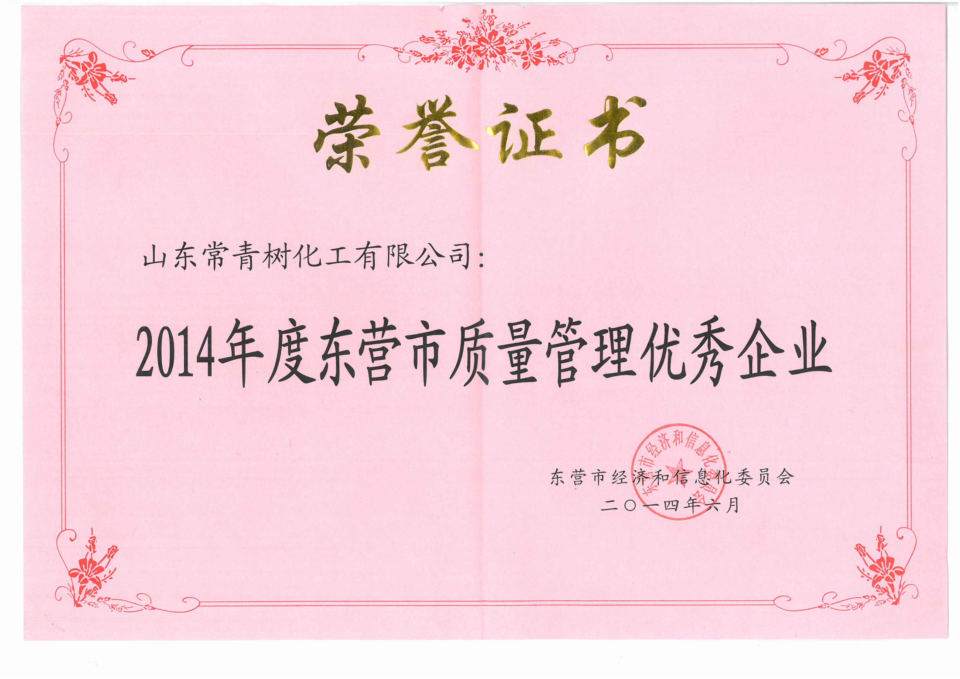 2014年,質(zhì)量管理優(yōu)秀企業(yè)