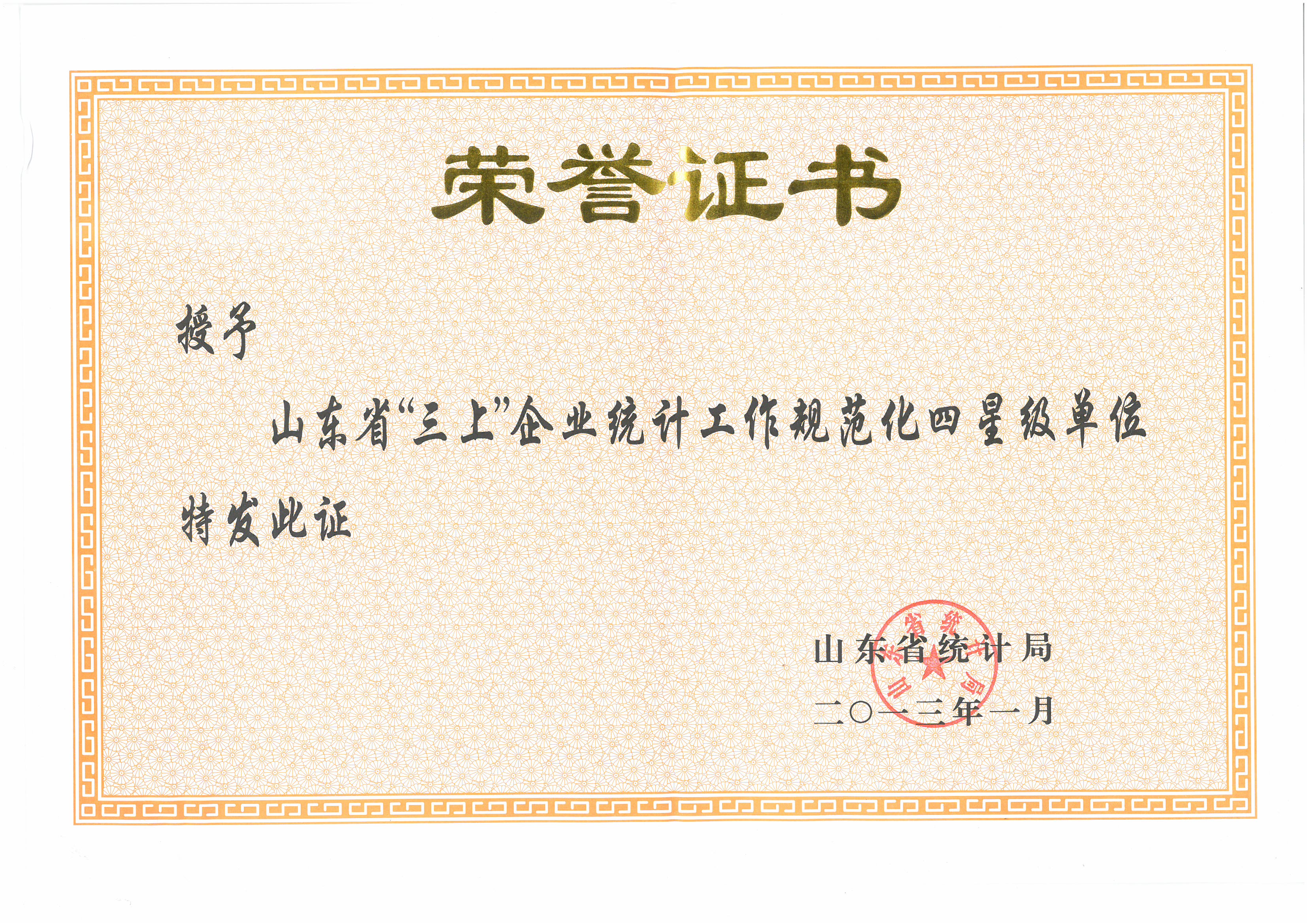 2013年,山東省“三上”企業(yè)四星級(jí)單位